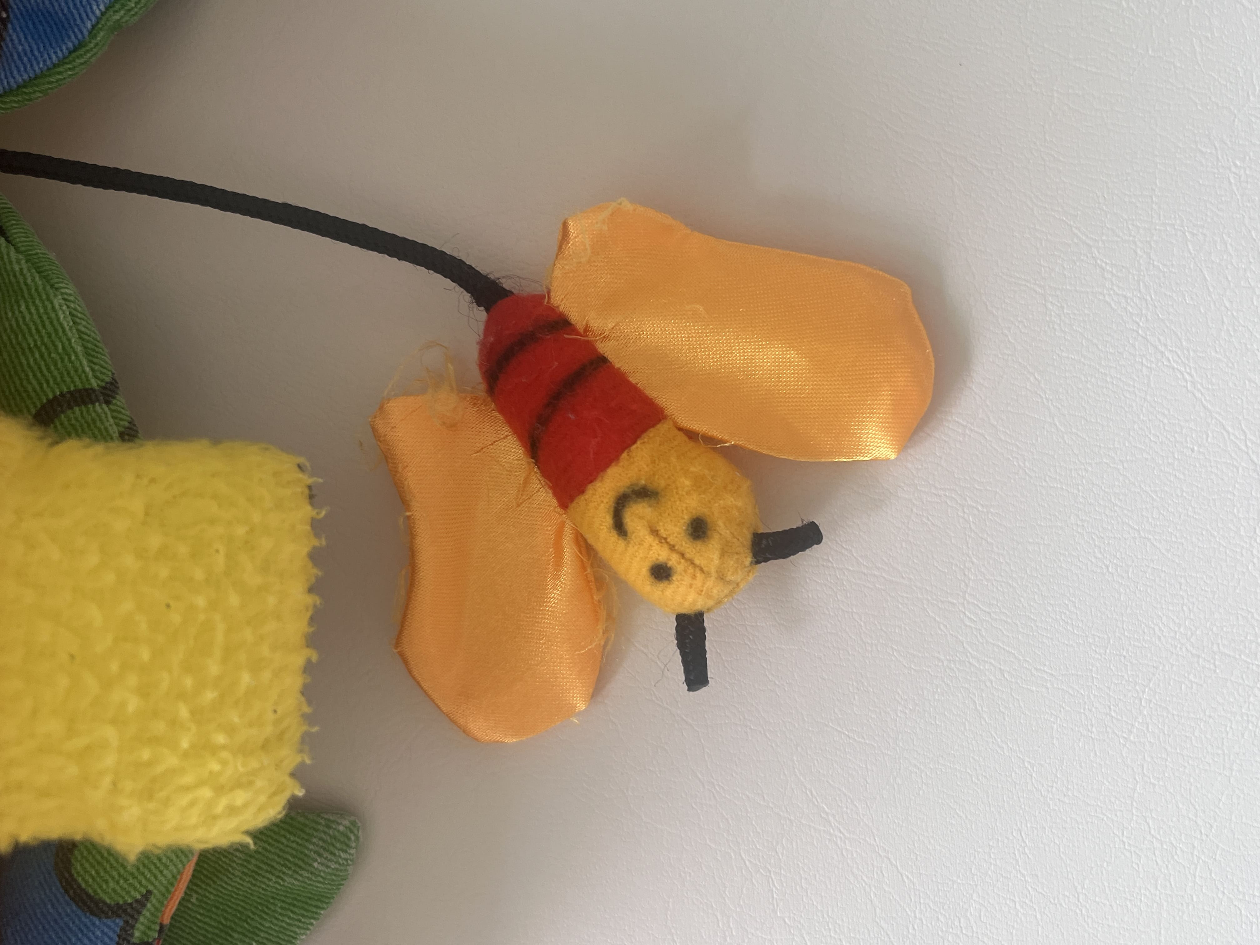 그중에서도 코야에 달린 나비를 정말 좋아해요. 입으로 가져가서 물고 빨기도 하고, 그 부분은 벌써 많이 망가졌어요ㅎㅎ 사진 보면 아마 티 날 거예요.