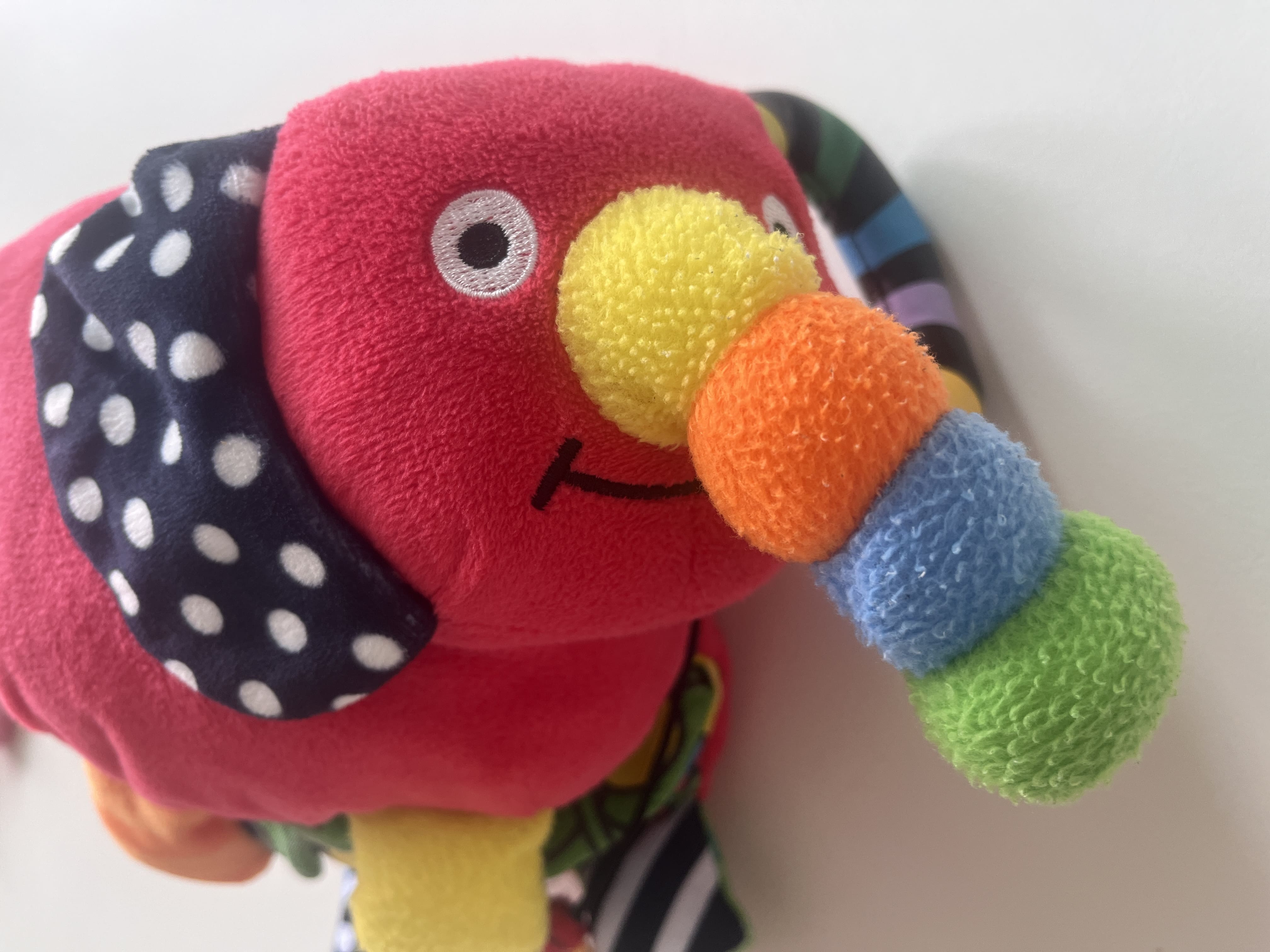 코에서는 삑삑 소리가 나고 다리에서도 바스락거리는 소리가 나서 아기가 신기해해요. 이런 자극이 많다 보니 쥐어주면 꽤 오랫동안 집중해서 놀더라고요.