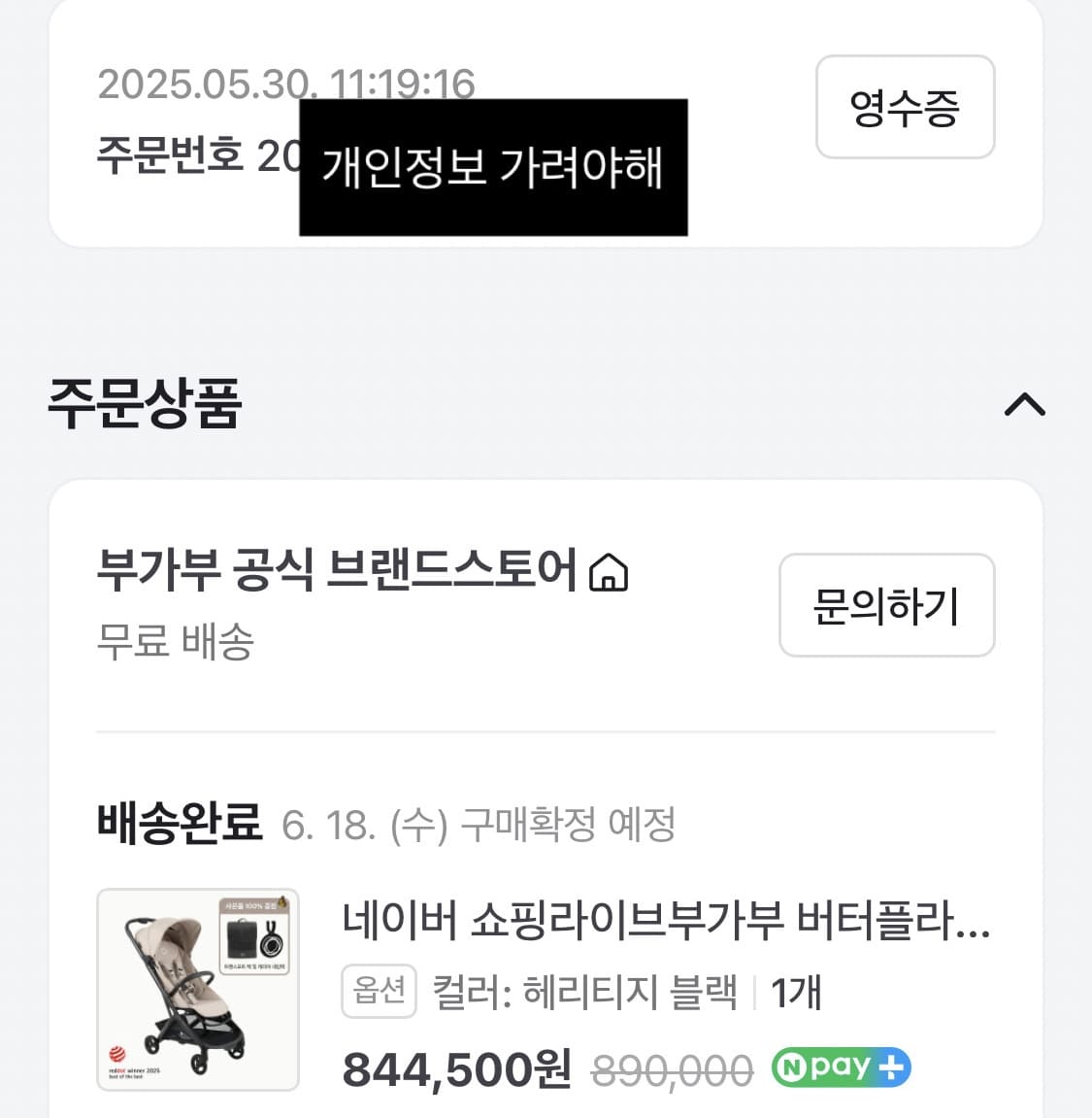 라이브 방송 보자마자 바로 구매했습니다! 구성은 버플2 유모차 + 레인커버 세트입니다.
