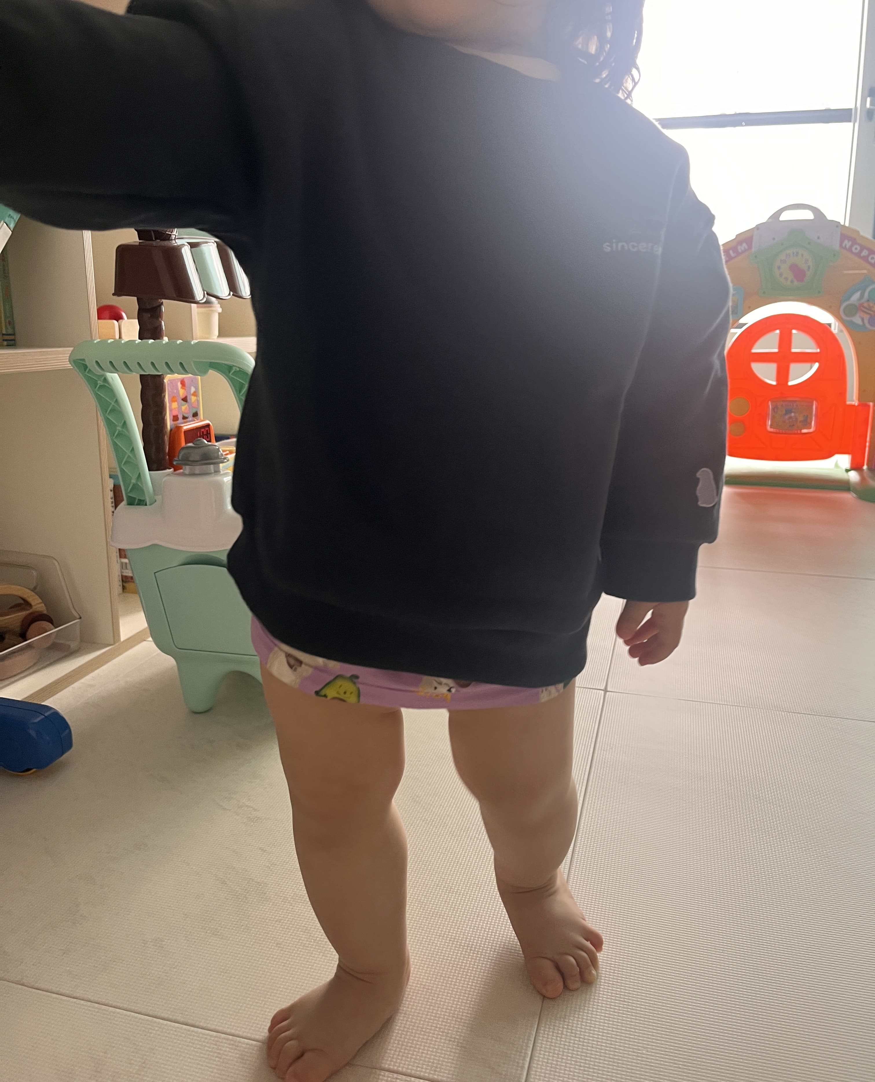 무냐무냐 내의를 입은 상태에서 입어봤는데 불편해하지 않고 편안해보였어요.