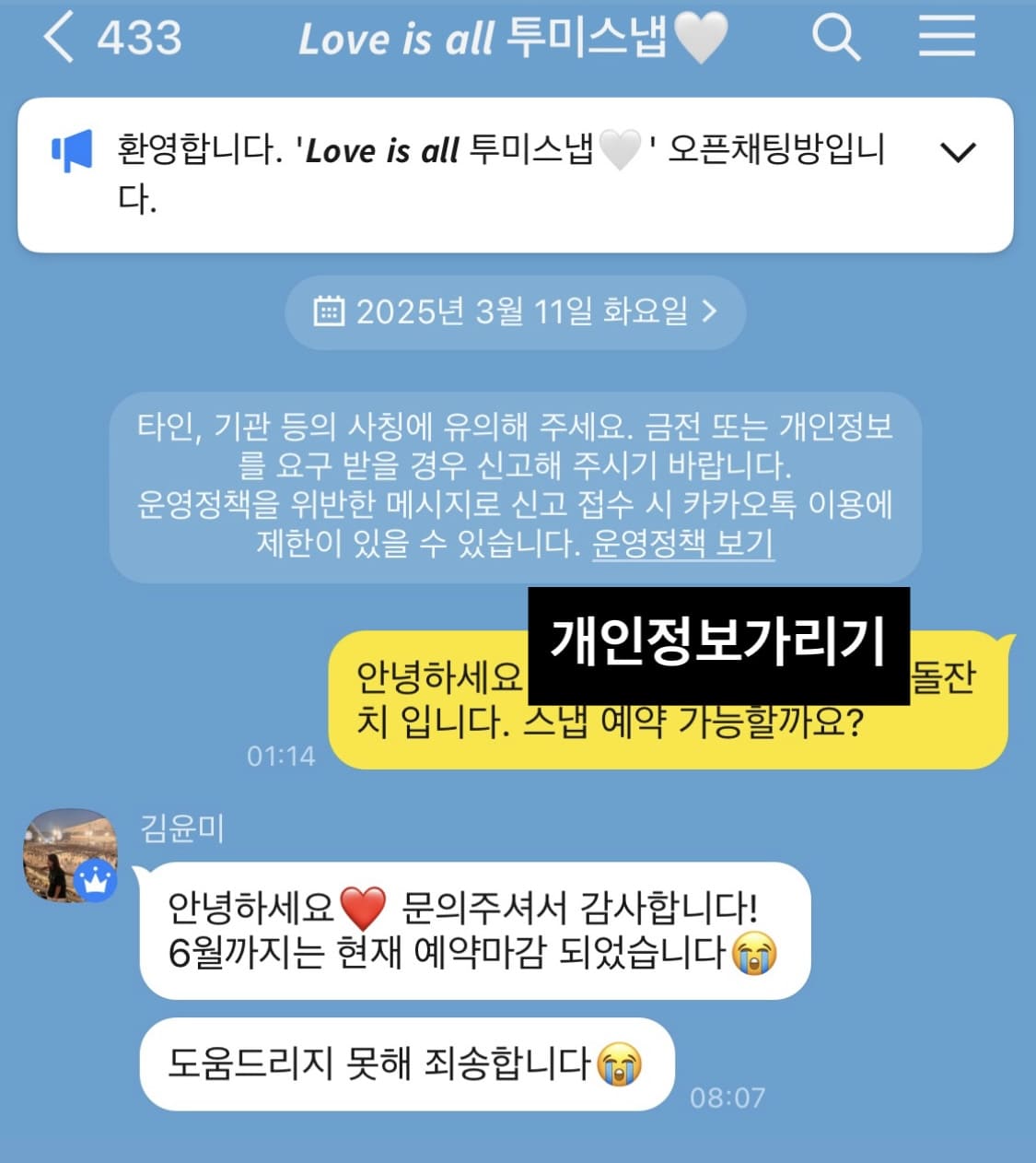 급하게 가능한 스냅업체를 찾아보기 시작했어요.