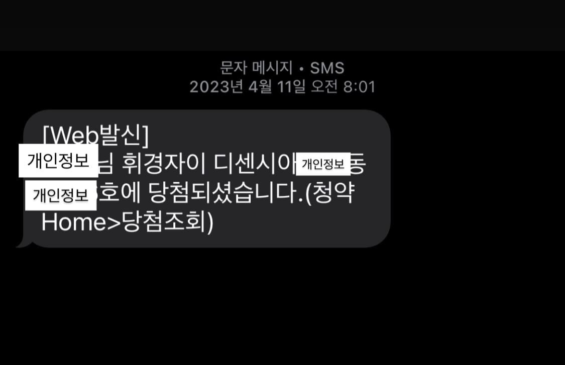 결과는 휘경자이 디센시아 59B 타입 당첨!