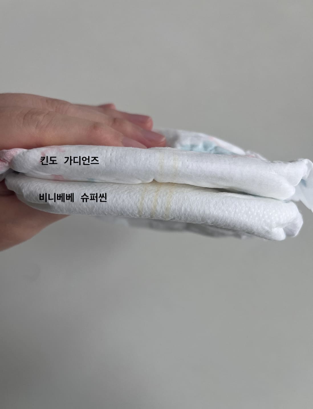 ‘매직슬림’이라는 이름답게 얇긴 정말 얇아요. 리베로 다음으로 얇은데, 오래 착용하면 겉면이 축축한 느낌이 있어서 기저귀가 샌 줄 알았어요. 국내 제조라 좋은데 품질은 아쉬워서 샘플만 쓰고 정착은 안 했어요. - 킨도